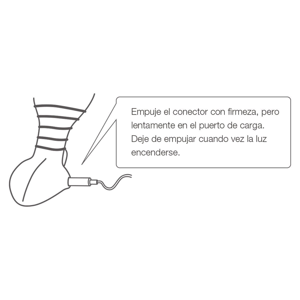 El cable puede ser conectado a cualquier puerto USB o adaptador de corriente USB/AC para empezar a cargarlo. Tardará aproximadamente 70 minutos en estar completamente cargado.