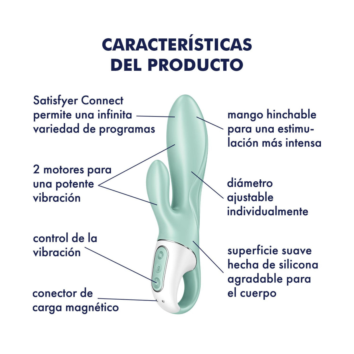 Las puntas redondeadas del eje y el estimulador del clítoris hacen que la estimulación del punto G y los estímulos selectivos en el clítoris sean especialmente fáciles. El anillo de retención le brinda control total en todo momento. La silicona sedosa y agradable para el cuerpo del vibrador permite que se deslice con especial suavidad y es fácil de limpiar con un paño húmedo y un poco de limpiador para juguetes. Conecta el vibrador a nuestra galardonada aplicación Satisfyer Connect: crea tus propios patrones de vibración o déjate mimar por las vibraciones de la música rítmica. Para vivir aún más aventuras, también puedes dejar que otra persona controle el juguete a través de la aplicación.