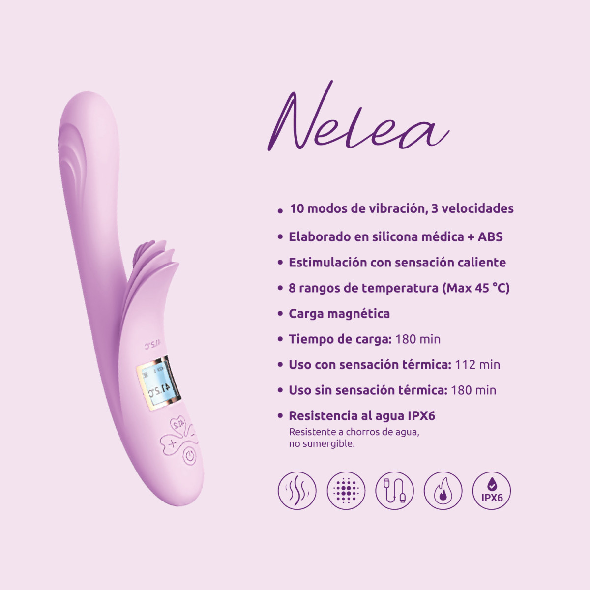 El Nelea Rosado cuenta con dos extremos con formas diferentes, uno en forma de bulbo y el otro en forma de consolador. Cada extremo tiene un motor independiente que permite una vibración potente y silenciosa, lo que proporciona una experiencia de estimulación completa y satisfactoria. Además, el vibrador es recargable, lo que garantiza que nunca se quede sin energía en el momento más importante.