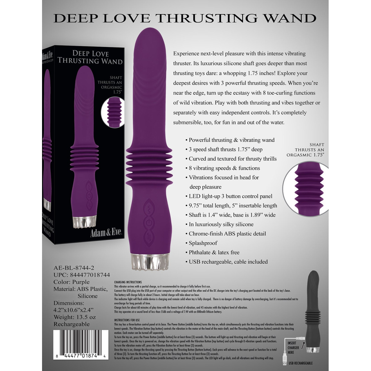 • Potente vibrador tipo hitachi y penetrador • 3 velocidades de penetración con hasta 4.4 cm de profundidad • Diseño texturizado y curvado para emociones más fuertes • Vibraciones focalizadas en la cabeza del juguete • Panel de control de 3 botones con iluminación LED